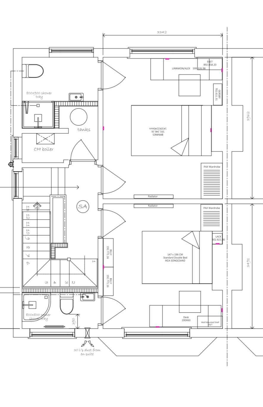 The property has three bedrooms located on the ground floor, two on the first floor and one in the attic. The large attic room has the benefit of its own kitchenette. There is a communal kitchen on the ground floor.