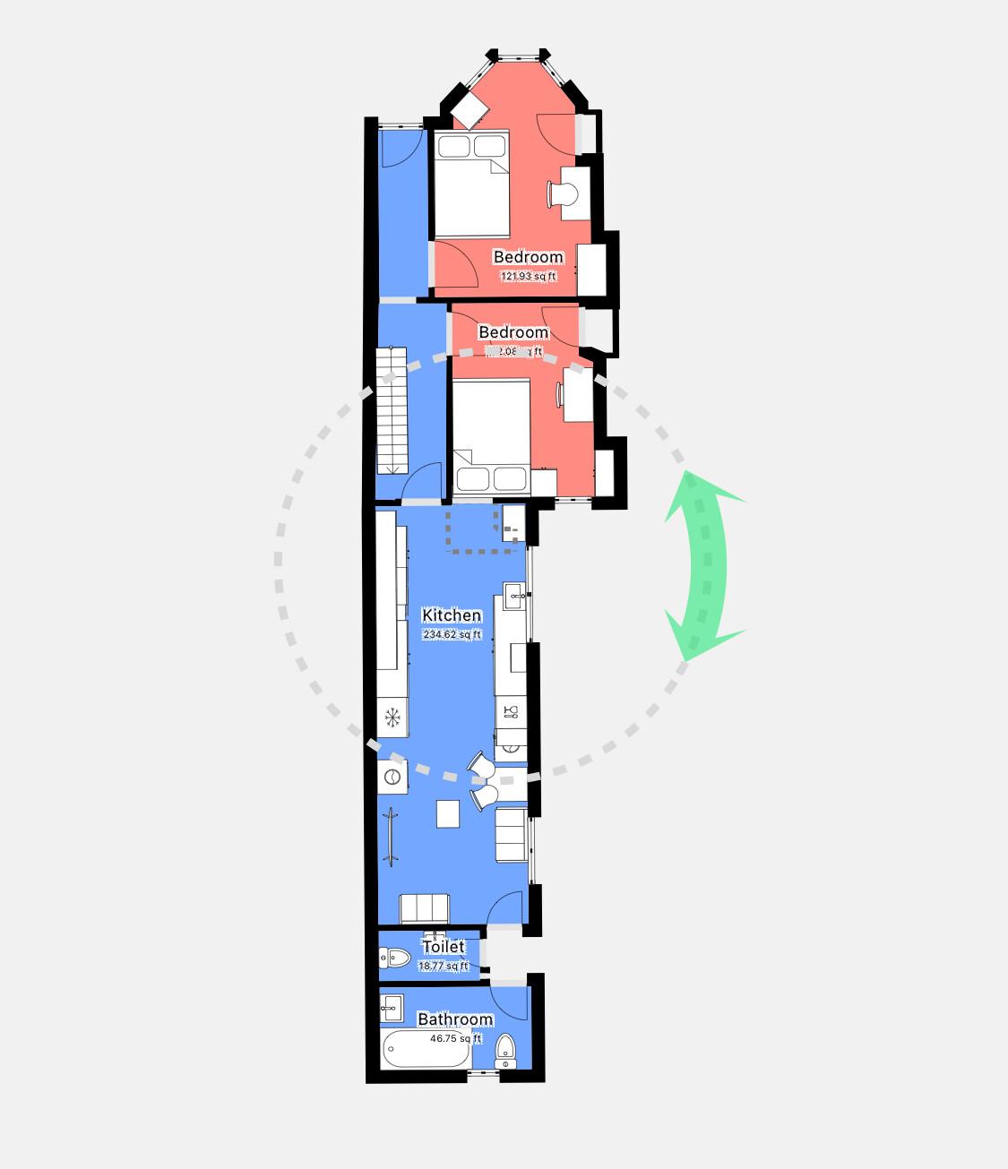 Each of the six double bedrooms is thoughtfully designed to provide comfort and privacy, featuring key coded locks for added security and peace of mind. The communal storage spaces ensure that there is plenty of room to store your belongings, while the burglar alarm offers an extra layer of protection, allowing you to rest easy knowing that your safety is a top priority.